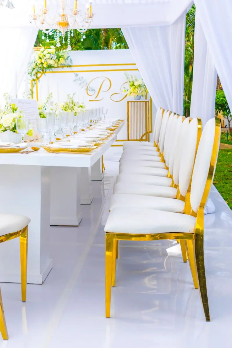 Chivari tavoli e sedie per eventi chaise mariage festa di nozze sedia in acciaio metallo oro bianco all'ingrosso silla tiffany sedia wed